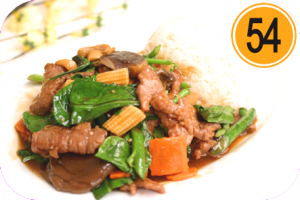 #54 CƠM BÒ/GÀ XÀO CẢI RÔ 芥蘭牛肉/雞肉會飯