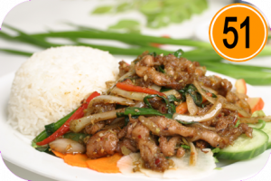 #51 CƠM BÒ/GÀ XÀO SẢ ỚT 香茅辣椒牛/雞肉飯