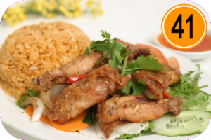 #41 CƠM SƯỜN GÀ RANG MUỐI 椒鹽雞扒茄汁飯