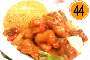 #44 CƠM HEO LĂN BỘT SỐT CHUA NGỌT 甜酸排骨茄汁飯